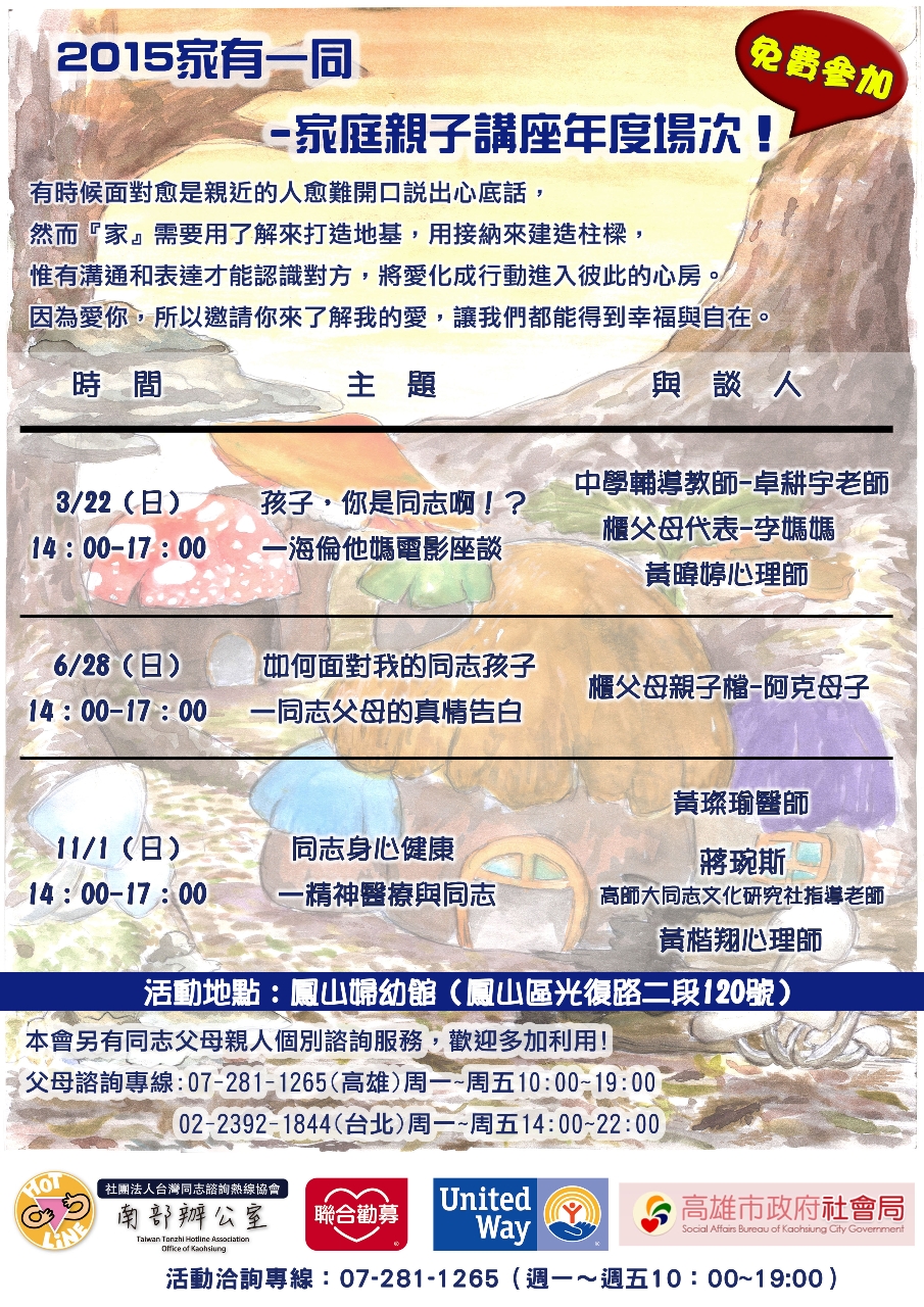 主辦單位:台灣同志諮詢熱線協會老年同志小組
